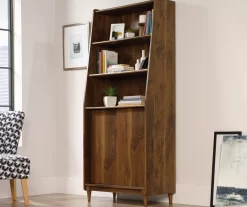 This computer desk with a hutch in a black finish will take your home office to the next level. The sides of the desktop gradually rise to meet the hutch for a sleek look. The top of the hutch doubles as a shelf, while the space underneath is divided into two storage cubbies where you can tuck away small items and keep your work surface organized. Providing support and stability is a metal base in a black finish and featuring striking design details, like tapered metal legs and slender X-shaped support bars. The compact, mid-century modern design that’s ideal for placing in your living room or bedroom as a home office.