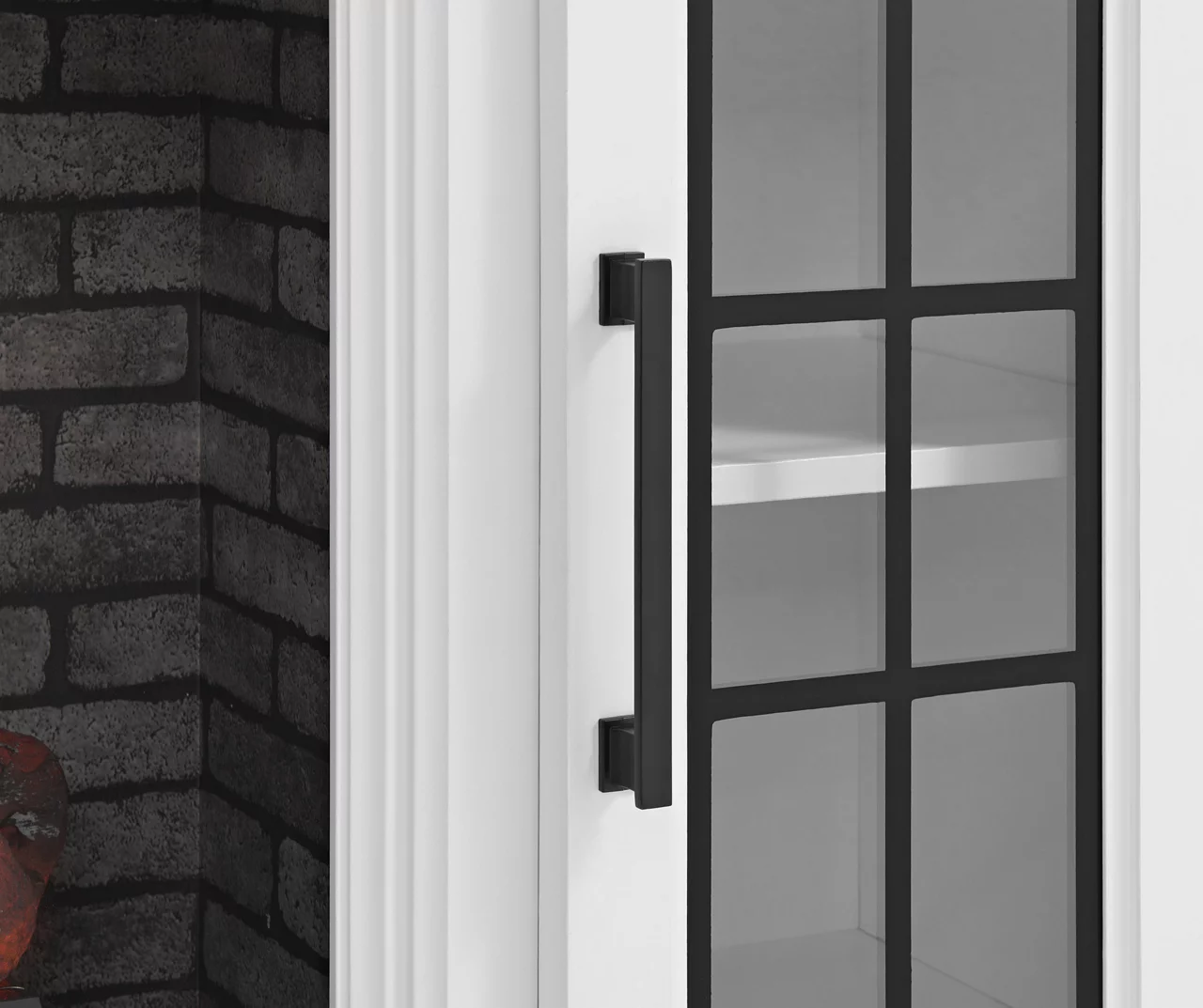 The Real Living fireplace console’s clean transitional styling and storage with adjustable shelves make it the perfect choice for your next living room or home theater. The 1,500-watt, 5,100-BTU infrared quartz heater provides supplemental warmth for rooms up to 1,000 square feet and can be adjusted on the control panel or using the included multi-function remote control. The two-tone white frame and brown oak finish top creates a crisp look in your space as you stow away items and accessories in the open and closed storage.