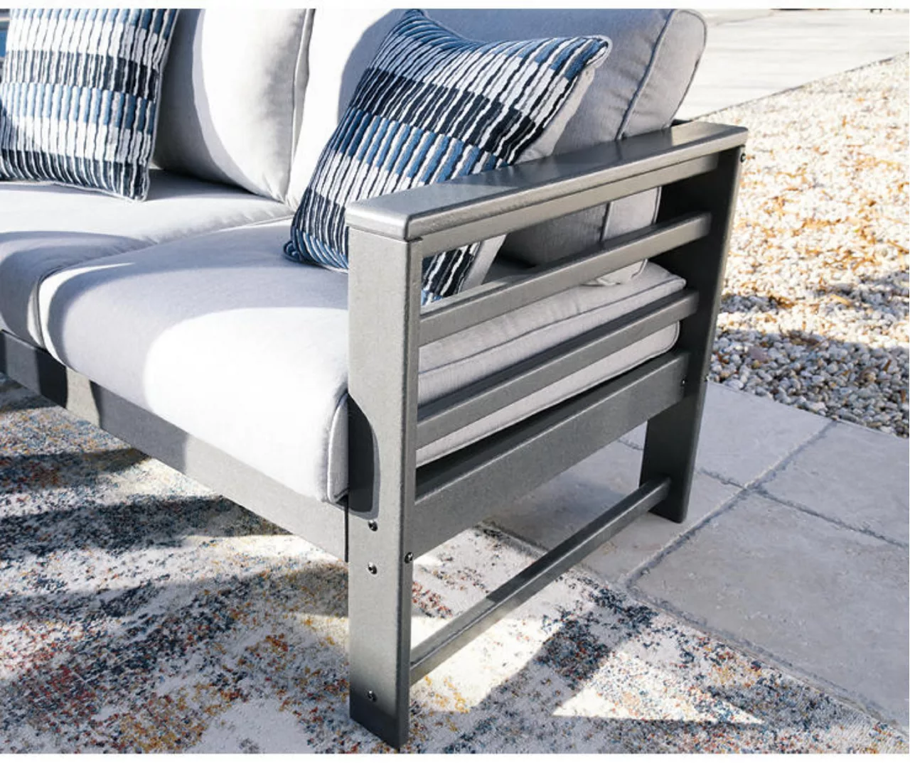 Indulgently comfortable furniture shouldn’t be limited to inside spaces. Create your own outdoor oasis with this cushioned loveseat. A study in form and function, the trend-right charcoal gray frame is crafted from Mega Tuff HDPE material for durability and weather resistance. Cushions wrapped in high-performing Nuvella fabric are comfortable and carefree.