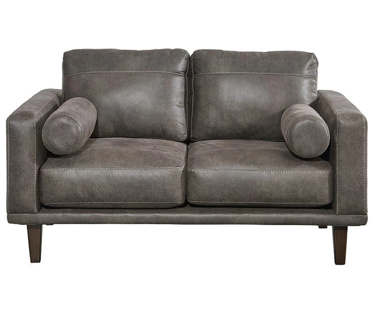 For a fresh spot in your space, turn to the Arroyo designer loveseat. This invigorating piece breathes warmth into your home with its striking gray faux leather upholstery and tapered legs. Wind down at the end of a long day when you sink into this canyon of comfort.