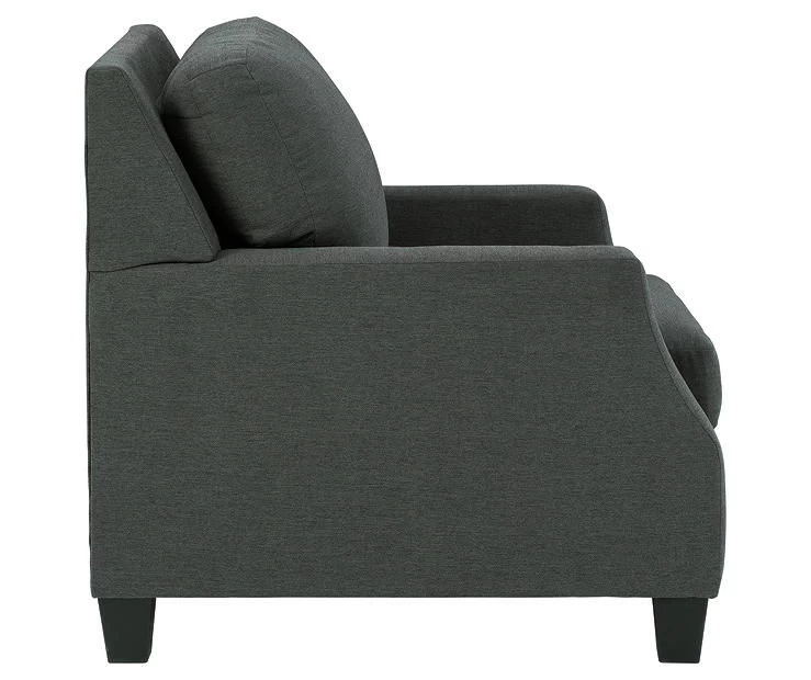 - Polyester upholstery in a charcoal gray tone