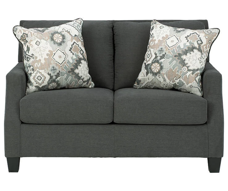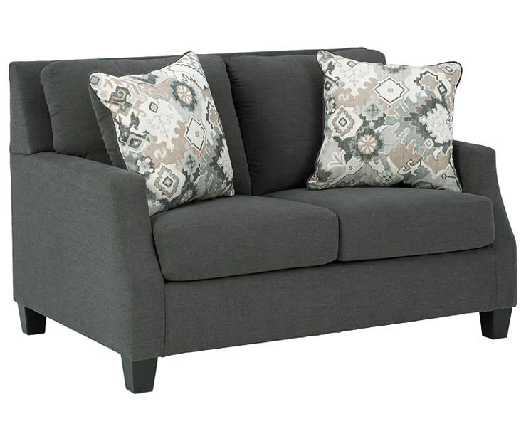 Dressed to impress with distinctive cutaway arms, the Bayonne loveseat is an above-and-beyond choice for your fashionable abode. Wrapped in a soft flatwoven charcoal fabric that’s naturally on trend, this designer loveseat is sure to suit contemporary spaces and modern farmhouse places—and look right at home with classic and eclectic furnishings. That’s the beauty of a great transitional piece of furniture. That’s the beauty of the Bayonne loveseat.