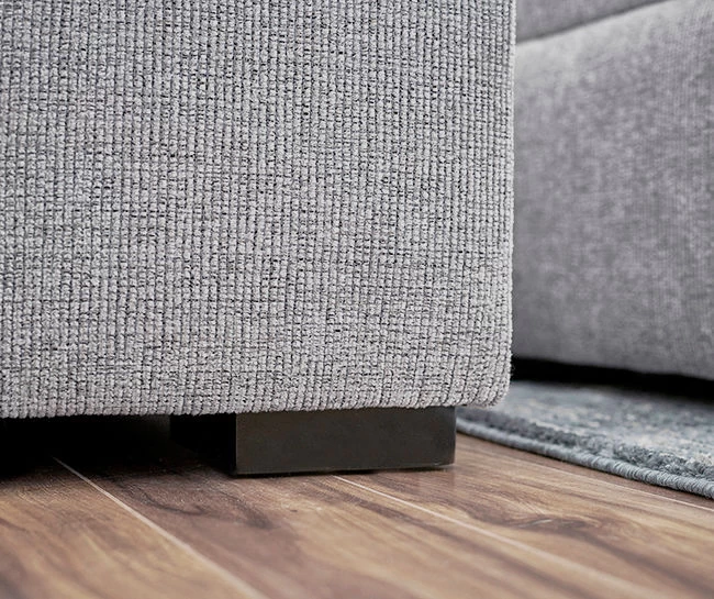 The overscaled Parkdale sectional and ottoman set features a dual chaise configuration that gives everyone a comfy seat. The soft chenille upholstery fabric in a dove gray color tone is accented with a mix of patterns and textures on the five toss pillows. Designed with sleek lines and contemporary flared arms, the Parkdale dual chaise sectional is complete with the rectangular ottoman that provides hidden storage with its hinged top.