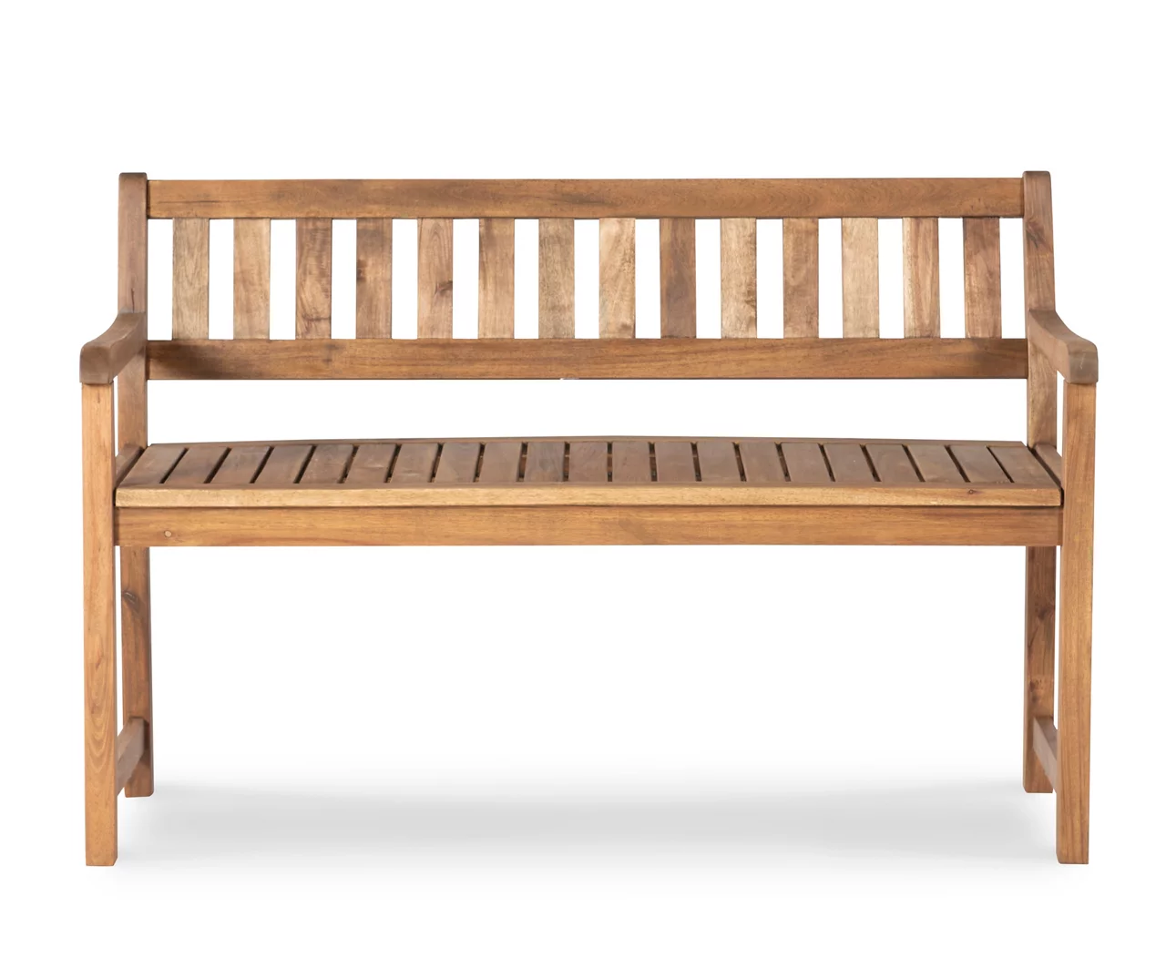 - Classic outdoor bench with slat-style seating