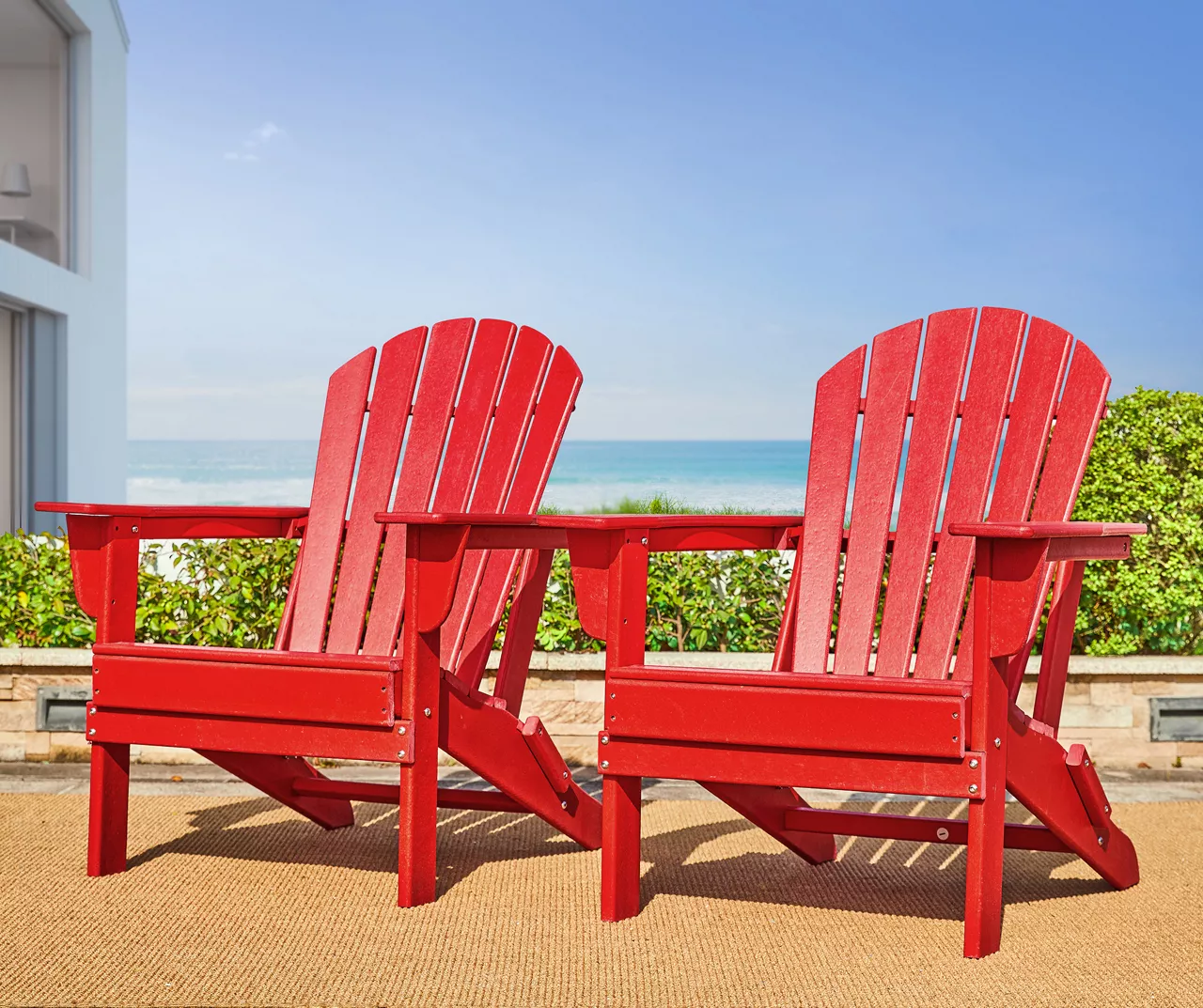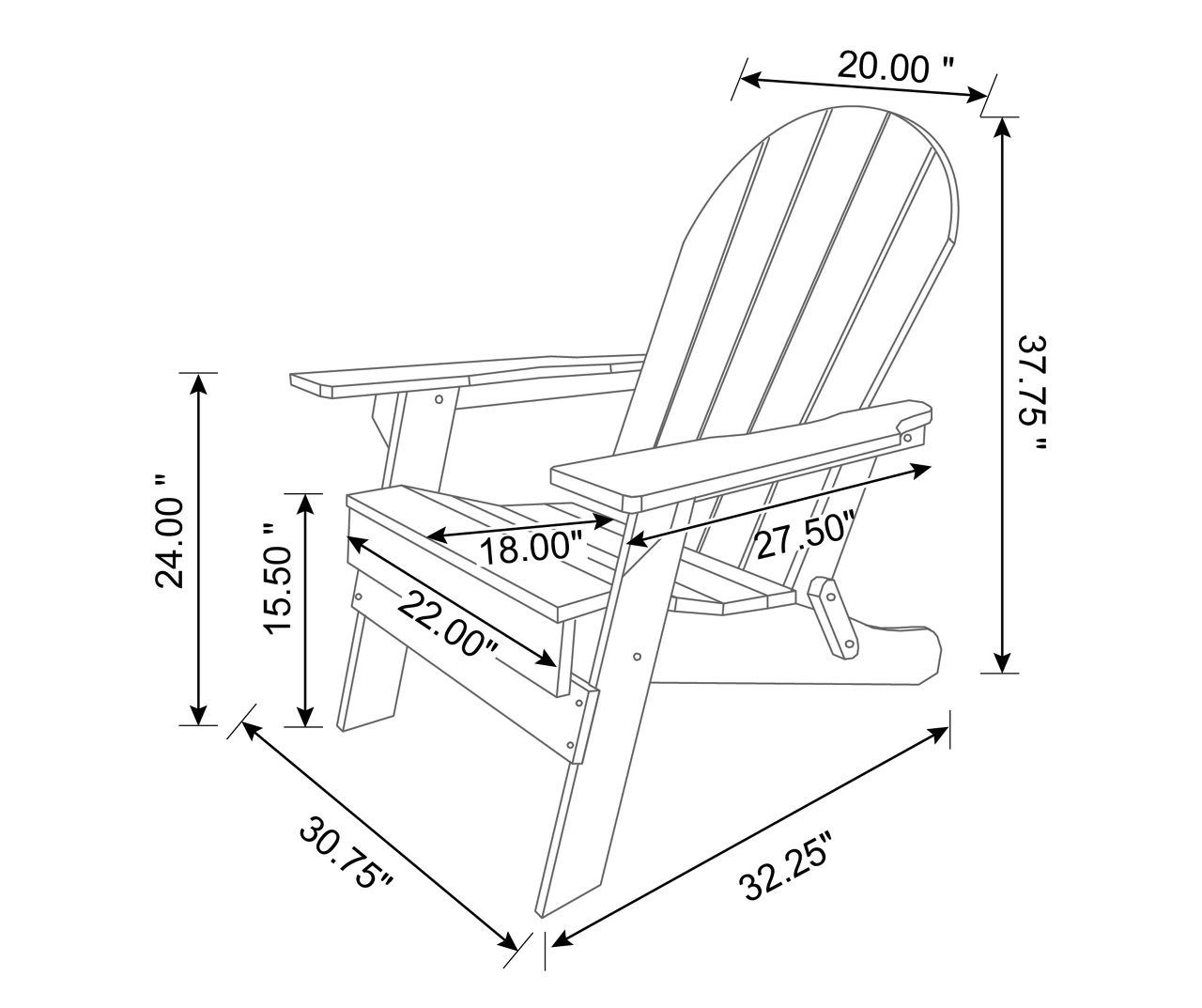 - Includes 2 outdoor folding Adirondack chairs