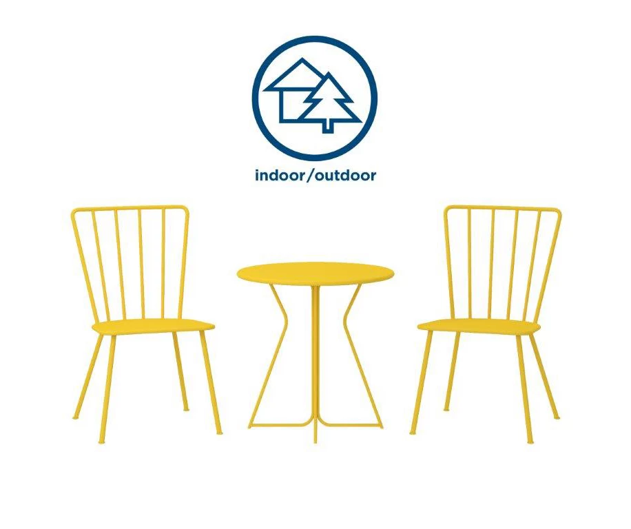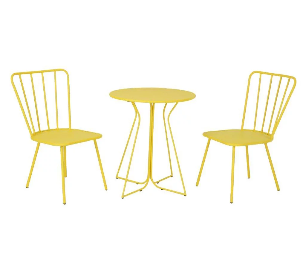 This three-piece Heidi furniture set from Novogratz is the perfect decor for all sorts of outdoor fun. This bistro set is light on its mid-century feet and fits perfectly into smaller outdoor spaces with its slender legs, making it the perfect stylish set for any home. This set is perfect for keeping poolside, using on the patio or entertaining on a balcony.