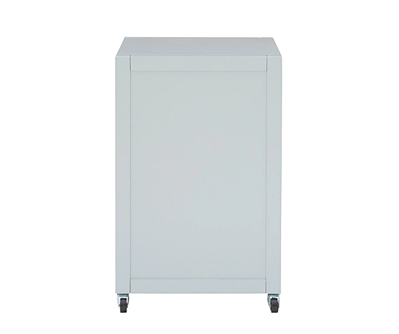 - Rolling storage filing cabinet in a sleek neutral gray color