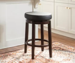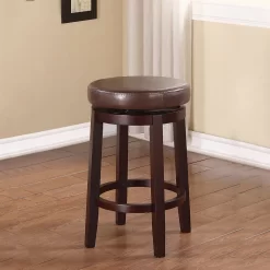 Bali Brown Faux Leather Backless Swivel Counter Stool, (24″)