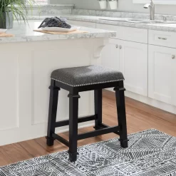 Clark Black & White Upholstered Tweed Backless Counter Stool