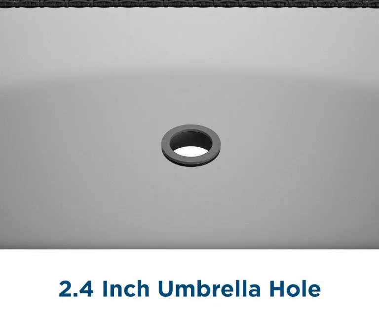 - Standard 2.4″ umbrella opening and cap will allow most standard outdoor umbrellas (umbrella sold separately)