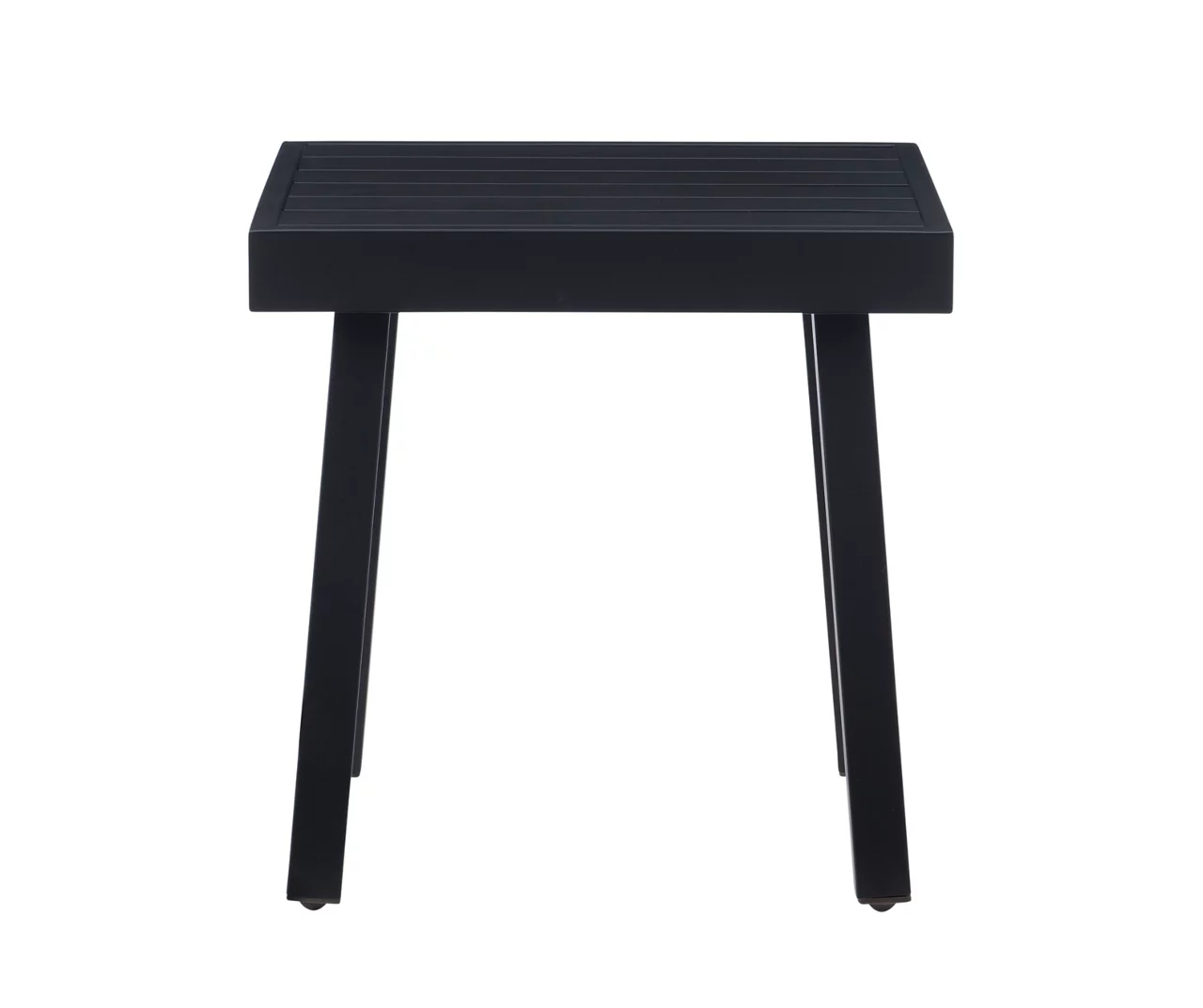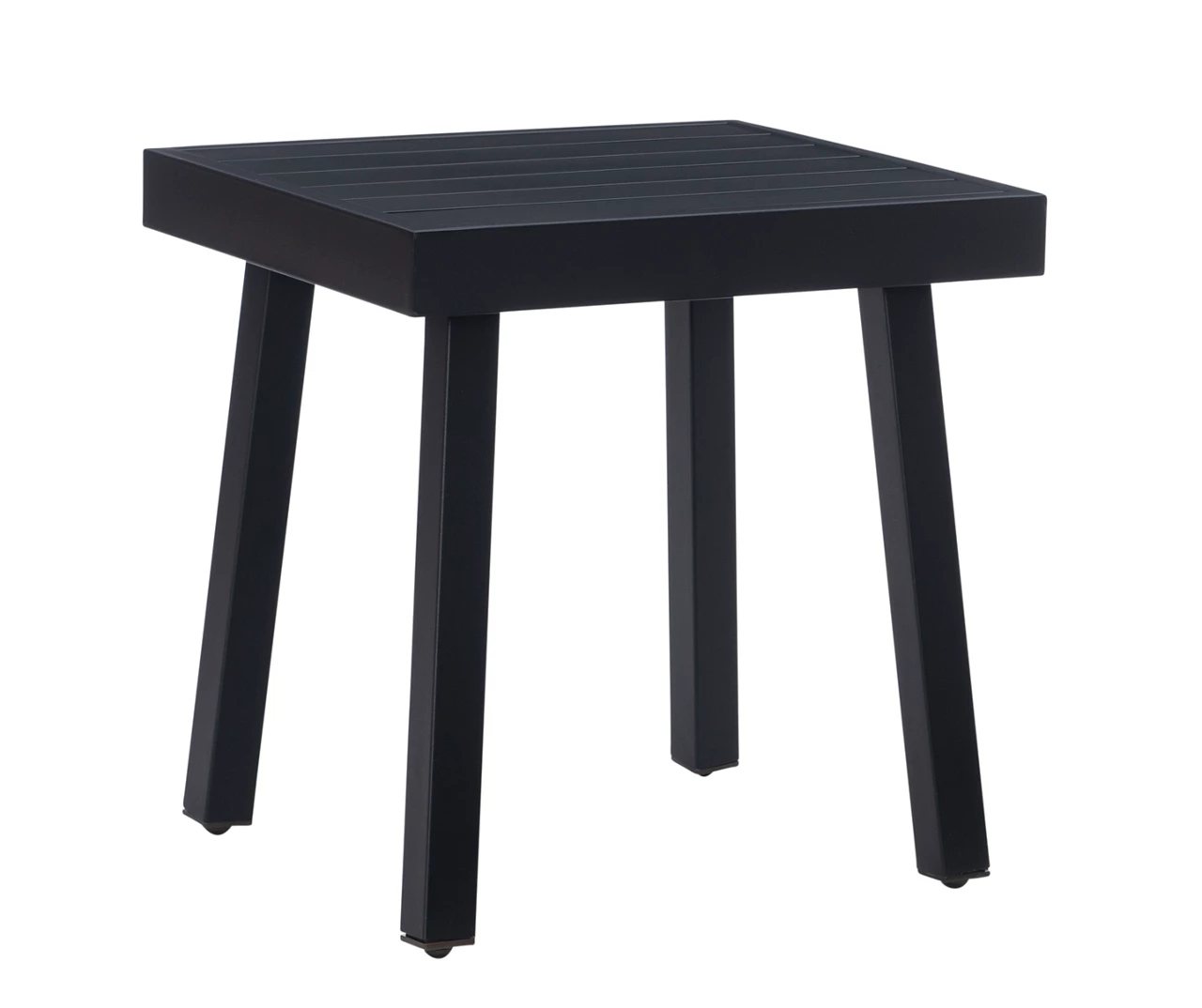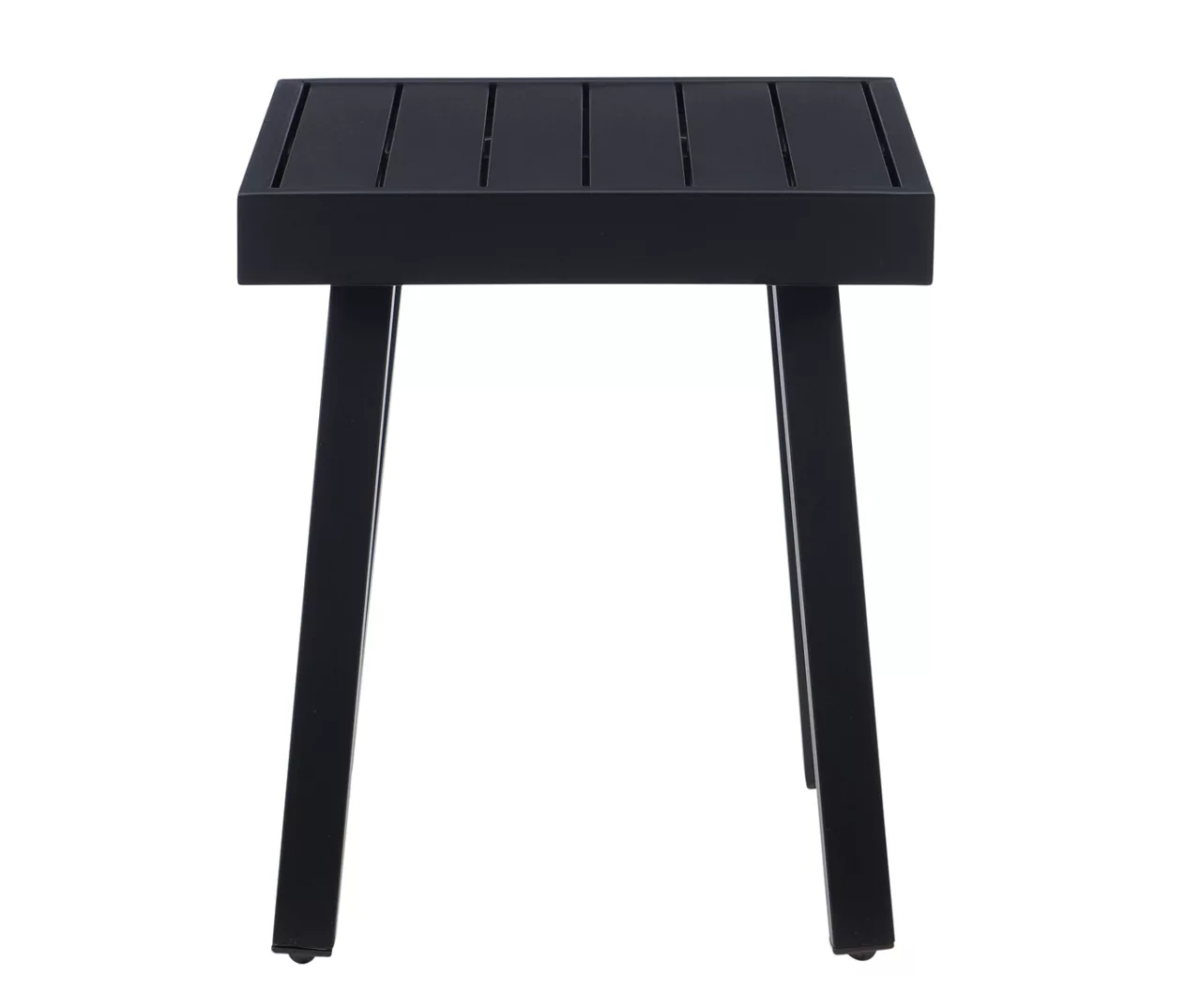 Modern, modest and reliable, this stylish side table will lend a hand when you need someone to hold your drink or elevate your outdoor décor. The frame is constructed of aluminum for strength and stability while maintaining a lightweight design for easy transport. Moreover, there’s no need to stress about taking it in and out after each use, as the black powder-coated finish is rust resistant.