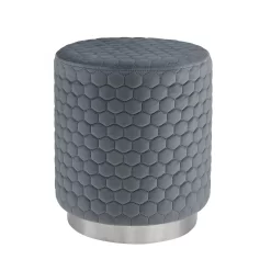 Subtle yet elegant. Fabulous accent stitching of the woven grey quilted fabric creates an sophisticated overall pattern that is pleasing to the eye and soft to the touch. The metal band along the base in silver adds a touch of luxury. Sitting 16.5 inches off the floor, this glamorous stool can fit under a make up vanity, bathroom prep table, desk or really, anywhere. Arrives fully assembled and ready to add a pop of color to any room.