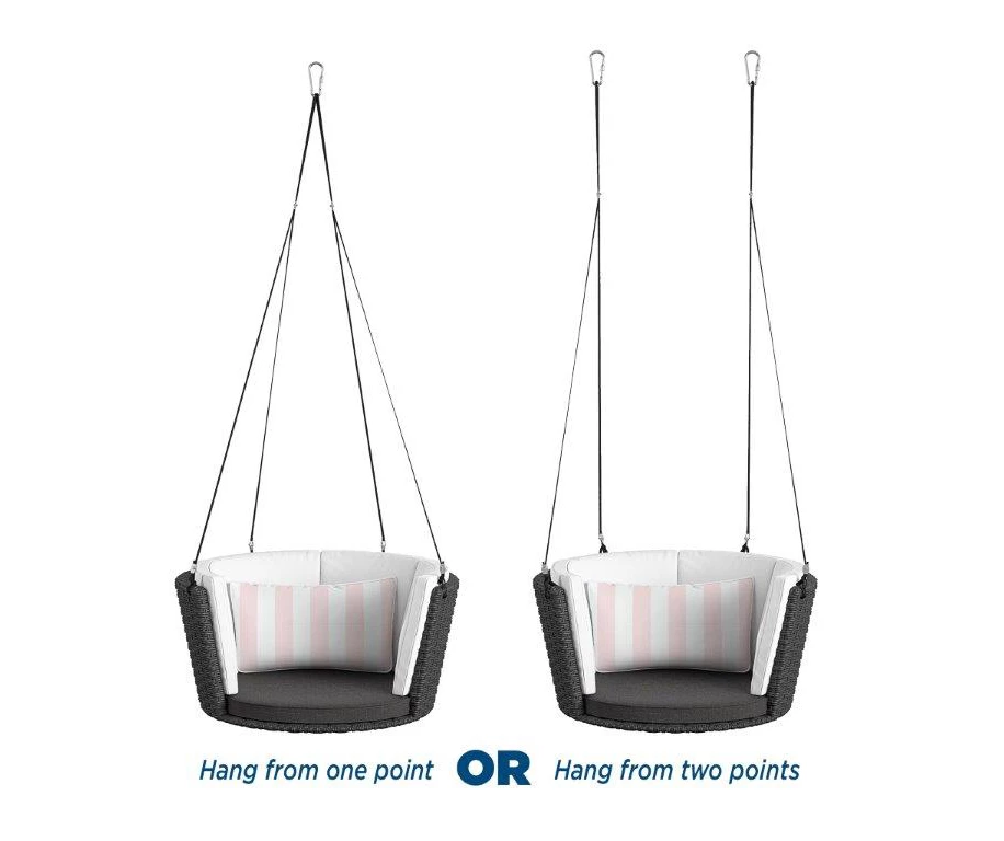 - Includes swing with cushions, throw pillow and 2 carabiners