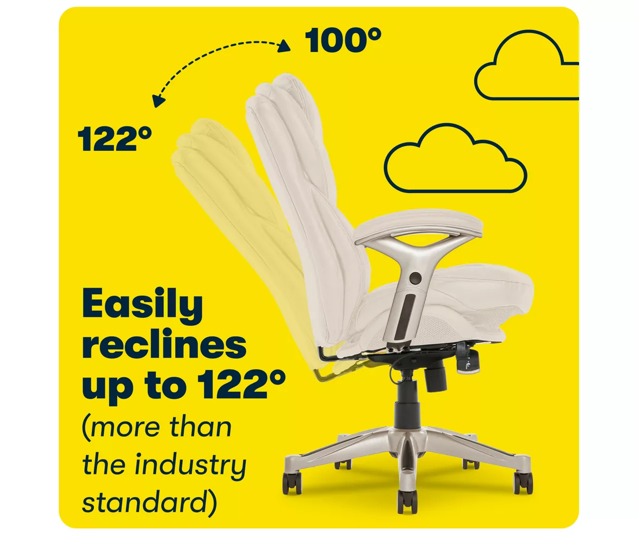 Help promote strength and flexibility in your back while you work with the Serta Back in Motion Executive Office Chair. This ergonomic office chair helps users become more productive and efficient by maximizing lower back support and comfort while seated. Its unique Back in Motion Active Seat Technology swivels the lumbar forward, providing the same effects as a pelvic tilt exercise by promoting spinal movement and flexibility in your core. Push-button adjustable armrests and pneumatic height adjustment allow the leather office chair to be quickly and easily customized to find the right fit for you. The multi-layered cushions are soft yet supportive, so you’ll feel refreshed even after a long day.