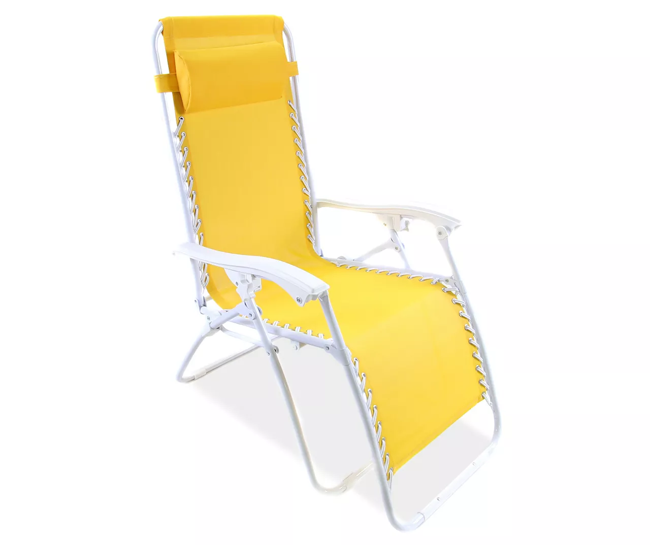 Relax in nature using this vibrant yellow zero gravity chair. Composed of a steel frame and PVC mesh seat, this chair is designed for life outdoors. Fully reclines for maximum outdoor relaxation or can be set up straight for more support.